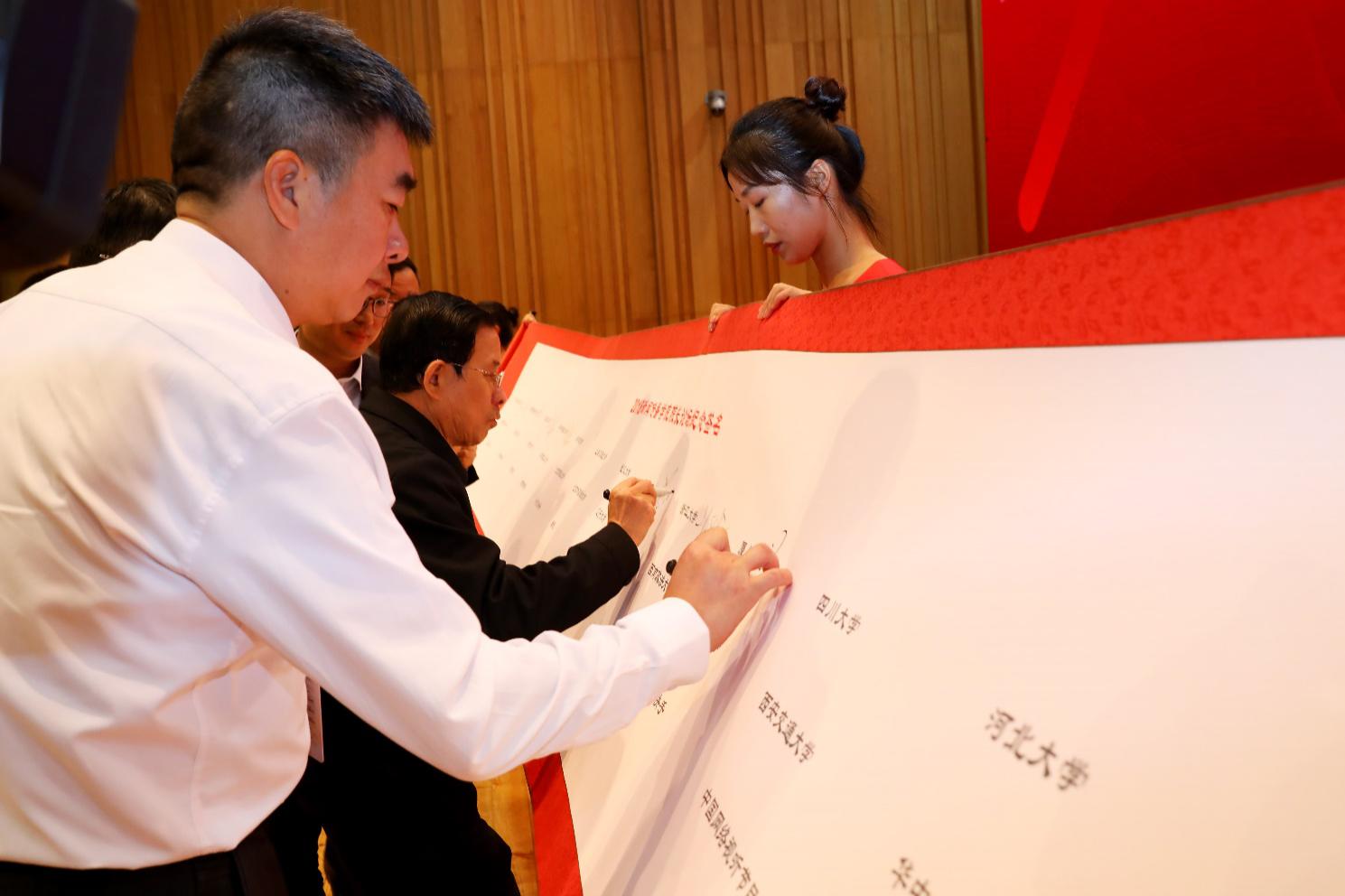 开幕式的第三项议程是举行“2018新闻传播学院院长论坛签名仪式”。各位嘉宾上台签名并合影留念。