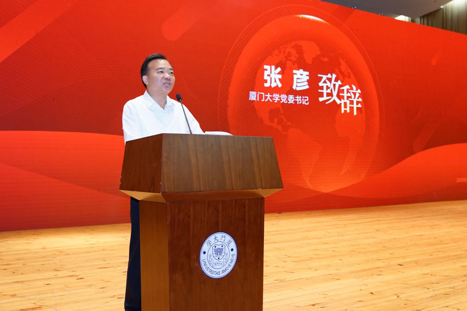 开幕式和主论坛的主题是“立德树人、入脑入心”。厦门大学党委书记张彦首先在开幕式上致辞。他提出,在互联网技术和信息环境发展的新时代,坚持马克思主义新闻观、用中国特色社会主义新闻理论教书育人,培养造就一大批具有家国情怀、国家视野的高素质全媒化复合型专家型新闻传播后备人才,为巩固壮大主流思想舆论、讲好中国故事、传播好中国声音提供有力支撑,是所有新闻传播教育工作者的共同责任。他表示此次由厦门大学与人民网联合举办的新闻传播学院院长论坛,旨在为新闻传播领域专家学者与业界精英搭建信息沟通、资源联通、合作共赢平台,这是学界与业界通力合作的一次全新尝试,也是新闻传播领域理论创新和实践创新的一次有益探索。