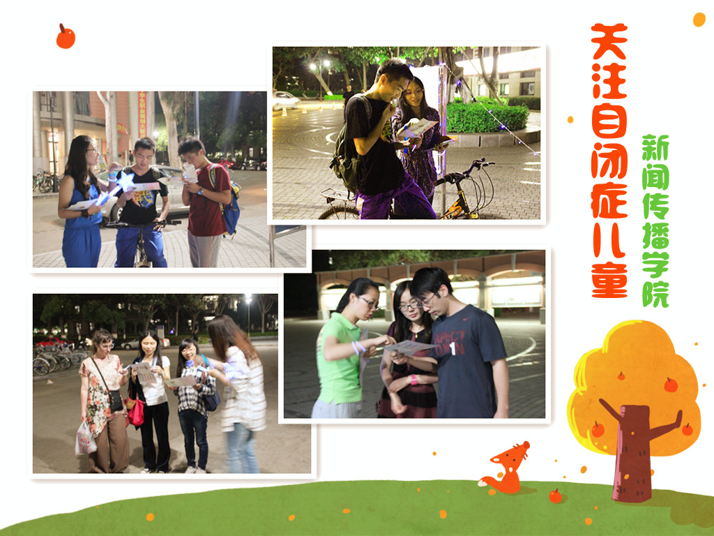 5月7日晚7点,三家村广场夜色里闪烁着点点蓝色的“星光”,这是新闻传播学院研究生党支部和研究生会共同发起的旨在关爱自闭症儿童的“蓝色行动”。