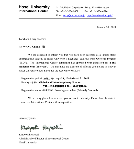 申请此奖学金的竞争非常激烈,申请者必须具备法政大学全英文教学环境下的听课水平(TOEFL成绩在80分及以上)和一定的日语基础,同时用英文撰写相关申请材料。奖学金为全额,含往返机票、学费、食宿费、保险等,均由两家日本资助公司提供,一年约合23万元人民币。奖学金学生除了在法政大学的学习之外,还可免费参加由资助公司主办的教育实习。内容包括:访问丰田汽车制造厂;听取由博报堂主办的广告学讲座;听取由代思主办的汽车知识讲座;参观江户东京博物馆,了解日本历史;参观东京国际车展,学习汽车相关知识;参加以广告和汽车为主题的日语讲座,通过学习广告、汽车知识,提高日语水平。