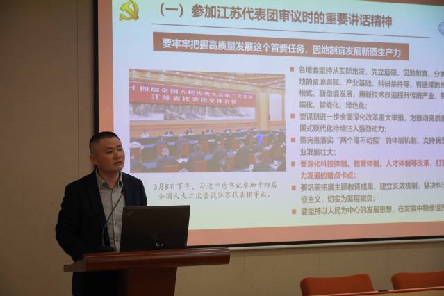 曾铮重点就大会概况和习近平总书记重要讲话精神进行传达学习,他指出,今年全国两会是在喜迎新中国75周年华诞和实现“十四五”规划目标任务的关键历史节点上,召开的一次十分重要的会议,备受瞩目、影响深远。大会以习近平新时代中国特色社会主义思想为指导,全面贯彻落实党的二十大和二十届二中全会精神,深刻领悟“两个确立”的决定性意义,增强“四个意识”、坚定“四个自信”、做到“两个维护”,坚持党的领导、人民当家作主、依法治国有机统一,发展全过程人民民主,坚持好、完善好、运行好人民代表大会制度,紧紧围绕党和国家工作大局认真履行宪法和法律赋予的职责,圆满完成大会各项任务,开成一次高举旗帜、真抓实干、团结奋进的大会,动员全国各族人民更加紧密地团结在以习近平同志为核心的党中央周围,坚定信心、同心同德,埋头苦干、奋勇前进,为全面建设社会主义现代化国家、全面推进中华民族伟大复兴而团结奋斗。