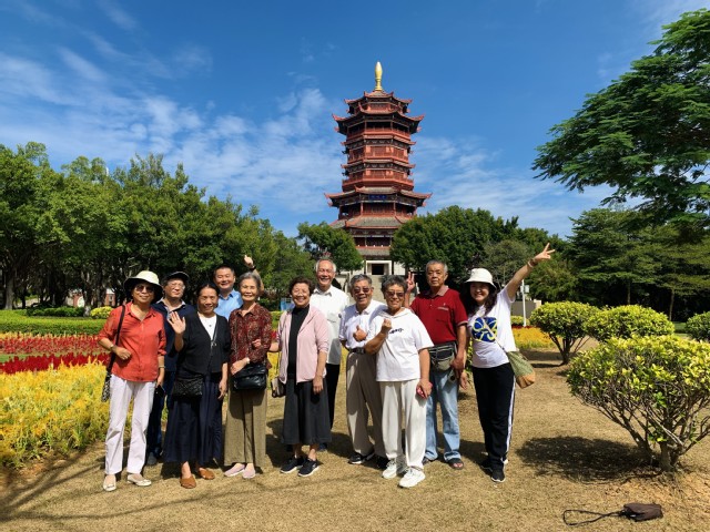 2023年10月24日一大早,退休老师们和学院党委书记曾铮、工会主席迟月利从厦门大学思明校区一起乘车到达园博苑。早上的园博苑游客不多,晴空万里,微风习习,环境舒适。退休老师们边走边看边聊,曾经来过园博苑的老师热情地给没来过的老师做着导游,指导哪里更适合拍照留念。