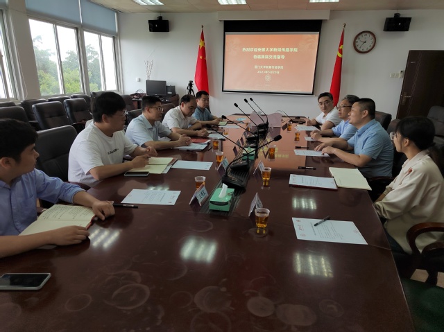 院党委书记曾铮向来宾介绍了厦门大学于建校初期就开始早期新闻教育,开启中国人办新闻教育先河的历史,以及于1983年复办新闻教育,率先以“传播”冠名、创办广告学专业、开办国际新闻专业的开拓创新精神和新闻传播学院建设发展情况。院党委副书记黄辉介绍了“马新班”基层党建品牌的创办特色。王丁凡对安徽大学新闻传播学院的建设情况和2名我院博士毕业生的事业发展近况作简要介绍。双方围绕创新基层党建模式,选树党建典型示范,促进党建与业务深度融合,以一流党建引领学科建设、推动事业发展等共同关心的话题展开热烈交流研讨。