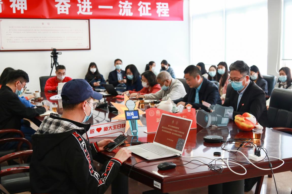 4月6日上午,厦门大学召开重温习近平总书记致厦门大学建校100周年贺信暨与时俱进建设世界一流大学再动员大会,激励全体师生坚定不移沿着习近平总书记指引的道路奋勇前进,不断开创世界一流大学建设新局面。校文庆奖学金获得者、新闻传播学院2018级本科生温欣作为学生代表在大会上发言。全院师生以线上形式集体观看本次大会。在学院分会场,校基层党建联络员潘宝柱,学院党政领导、党委委员、系主任、教工党支部委员、教师和学生干部代表共同收看大会并参加座谈会。座谈会由院党委书记曾铮主持。