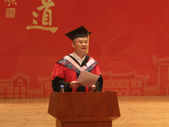 首先,余清楚院长发表了题为《青春八问》的致辞,饱含对毕业生的祝福与期望:“你合格了吗?你有新的梦想吗?你会保持定力吗?你能成为家庭的顶梁柱吗?你会自暴自弃吗?你会强身健体吗?你会继续学习吗?你优雅吗?”这八问连同告诫毕业生们的话语“千万不要被‘内卷’所束缚、不要被‘躺平’所困扰”,既让大家陷入思考,又引得台下师生欢笑连连。