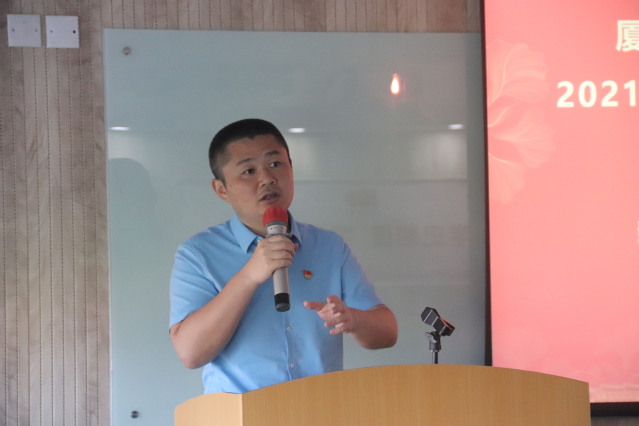 传播学系教工党支部书记谢清果老师和“马新班”先锋党支部章一妮同学分别作典型发言,分享了支部开展党史学习教育的特色做法和经验。谢清果介绍了传播学系教工党支部发扬学术报国情怀,推动党史学习教育与教学科研工作相融合,紧抓落实“先行一步”,通过开展“三会一课”、“固定党日+”和双周政治理论学习,做到明理增信,加强支部建设,推动课程思政建设,落实党史学习教育进课堂、进头脑,入脑入心。章一妮介绍了“马新班”先锋党支部近期开展的学习贯彻习近平总书记致厦门大学建校100周年贺信精神专题“固定党日+”活动、研读红色经典读书会、“党史上的今天”、“我身边的红色故事”等丰富多彩的专题活动和心得收获。