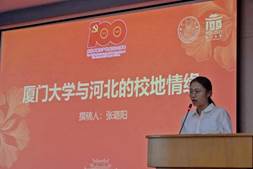 校党委宣传部张夏分享了宁夏与厦大的校地情缘。闽宁协作,跨越山海,战贫逐梦,数年来,厦门大学与宁夏结下了不解之缘。在何可同学眼中,闽宁镇的“致富路”是金色的宁夏,六盘山的“长征路”是红色的宁夏,黄河流域的“生态路”是绿色的宁夏,而厦大支教团的“支教路”则是蓝色的宁夏。何可认为,厦大青年新闻人要牢记习近平总书记给厦门大学百年校庆的贺信精神,传承优良校风,全面提升服务区域发展和国家战略的能力。