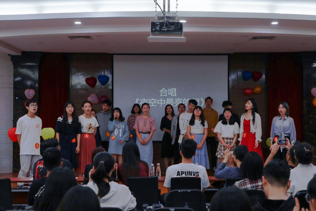 大赛伊始,所有晋级选手合唱《夜空中最亮的星》,用歌声表达新传学子对一百年前的爱国青年学子的赞美,传承五四精神。