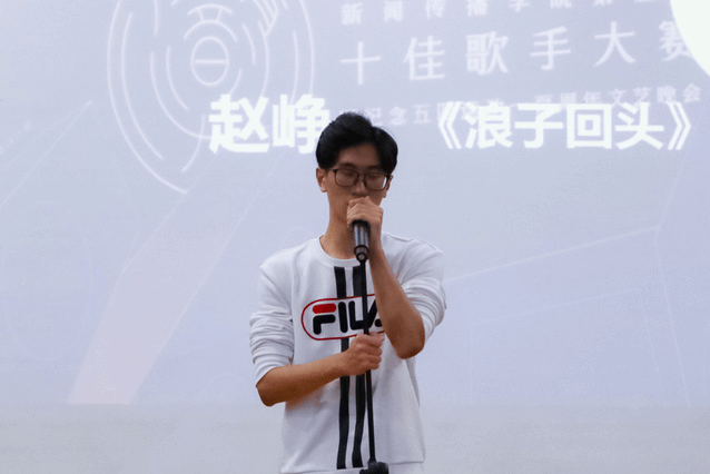 评委评分期间,去年十佳冠军、校级十佳选手赵峥受邀演唱《浪子回头》。