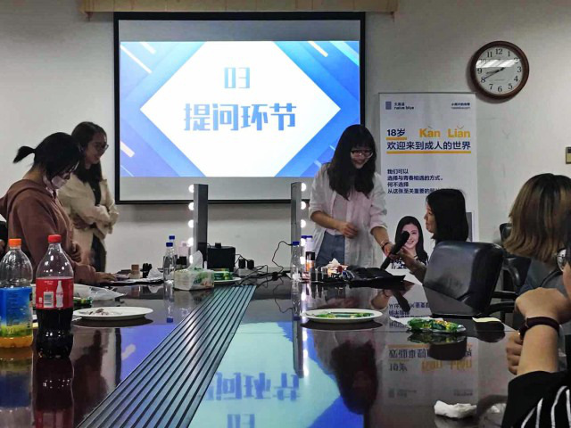 面试妆容分享后,到场的同学们针对自己平时的化妆经历向天真蓝的三位美妆师进行了提问。得到了美妆师详尽和耐心的解答。