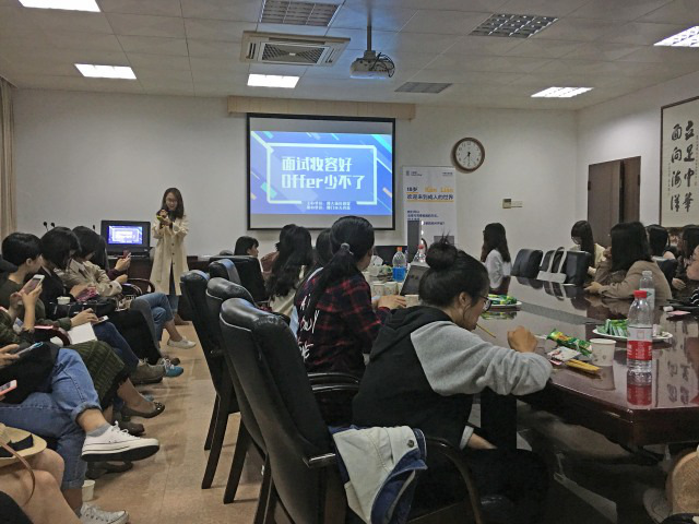2018年3月30日晚七点半,由厦门大学新闻传播学院就业促进中心、厦门天真蓝主办的面试妆容分享会——“面试妆容好,offer少不了”在新闻楼四楼会议室举行。厦门天真蓝的店长及三位职业美妆师带来了一场关于面试妆容技巧的干货讲座,新闻传播学院四十多位同学参加了本次分享会。就促为同学们提供了饮料与点心,更有16位同学获得了天真蓝提供的优惠券,可谓收获满满。
