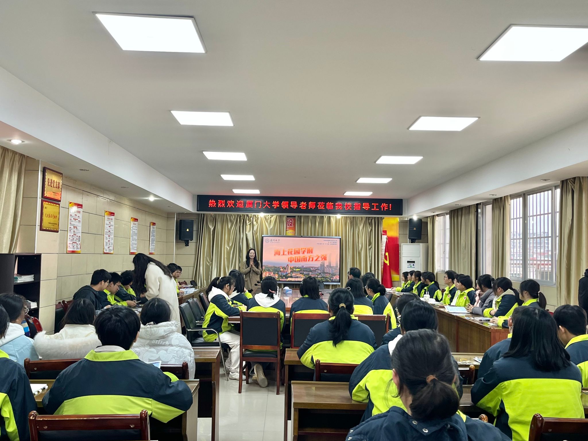 黄含韵副教授一行走进赣州三中,为同学们带来一场生动而深入的招生宣讲,并准备了富有厦大特色的纪念品。讲座伊始,黄含韵老师为同学们介绍了厦门大学的校情与招生情况,引发同学们对“南方之强”的好奇与向往。
