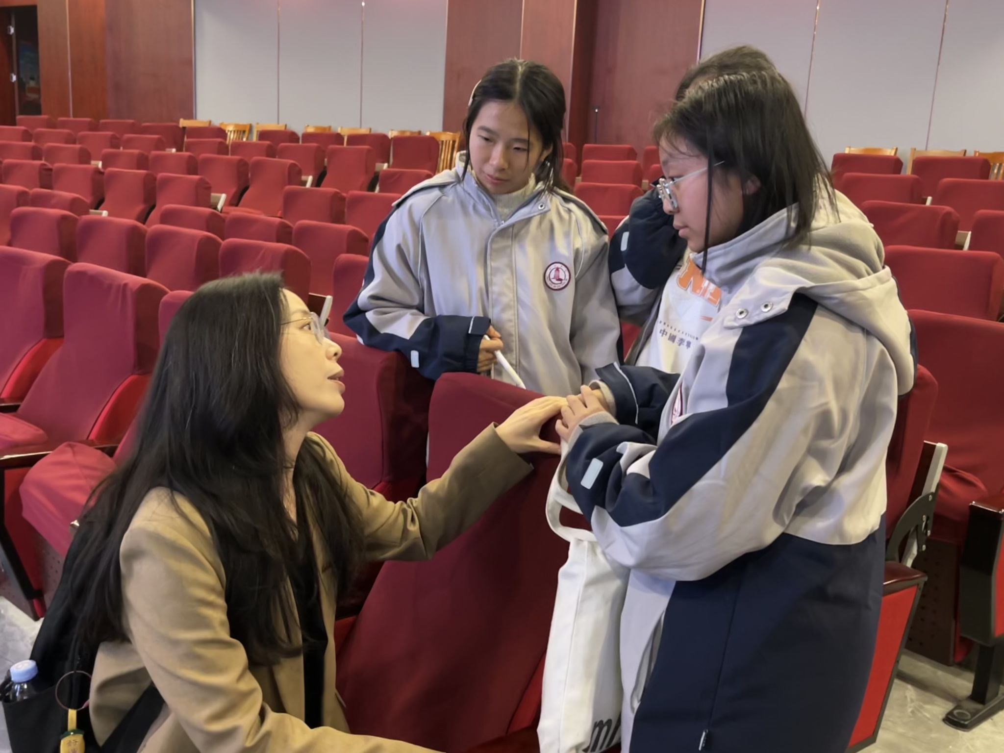 在互动答疑环节,同学们踊跃提问,内容涉及厦大校园生活、招生政策、转专业机制等方面。熊慧教授结合实例细致解答,现场气氛轻松活跃。活动期间,硕士研究生魏艳鸽、叶莹为同学们发放了厦门大学特色纪念品,包括明信片、书签与定制文具等,深受学生喜爱,进一步拉近了学子与厦大的距离。