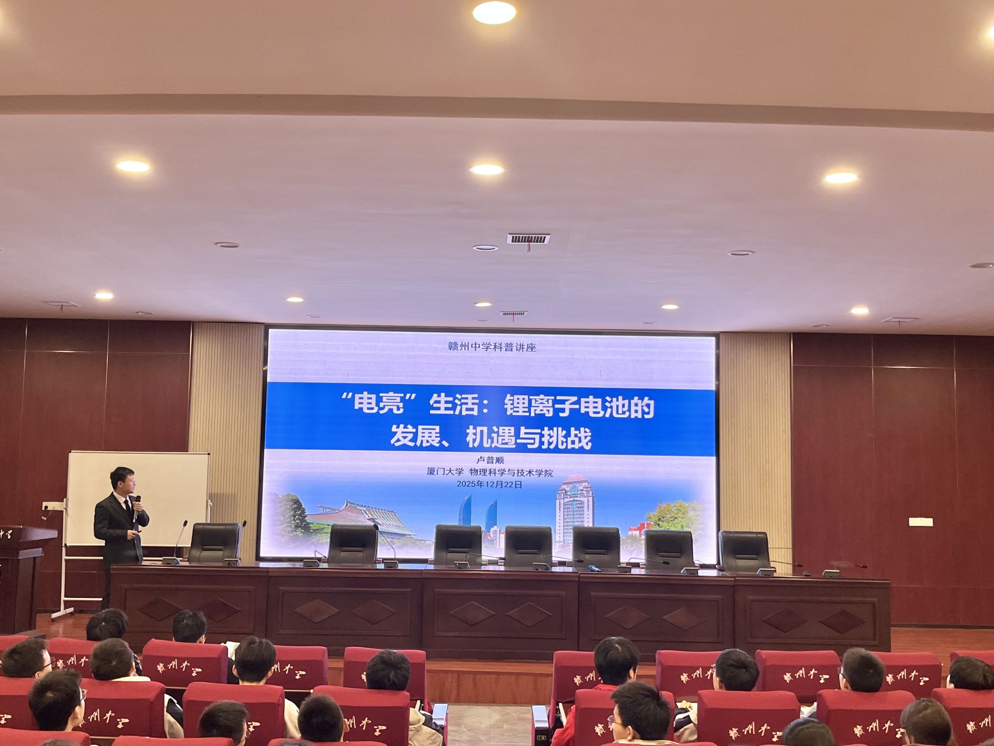 之后,卢普顺副教授发挥专业特长,作了题为《“电亮”生活:锂离子电池的发展、机遇与挑战》的科普讲座。他从电池发展史讲起,深入浅出地介绍了锂离子电池的技术原理、应用前景及我国在该领域的领先优势,讲座内容紧扣科技前沿,生动有趣,充分展示了厦门大学在理工科领域的科研实力与创新精神。