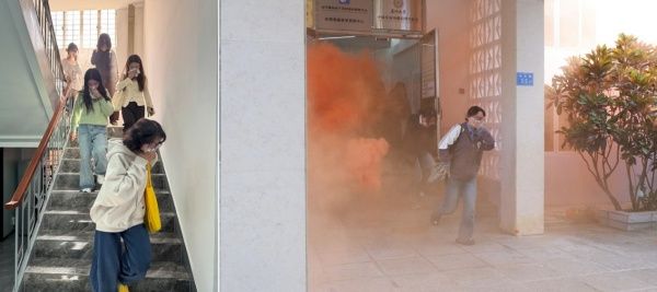 演练开始前,由实验中心吴懋雯老师为参与演习的师生们做动员工作,介绍了演习的基本流程、实验楼内应急疏散路线分布和疏散中的注意事项。随着模拟火警警报响起,应急疏散演练正式启动。浓烟弥漫中,引导员迅速引导师生们用湿巾捂住口鼻,低姿弯腰,沿指定疏散通道有序撤离。全体参演人员安全抵达集合点,实现“全员撤离、零失误、零滞留”的预期目标。