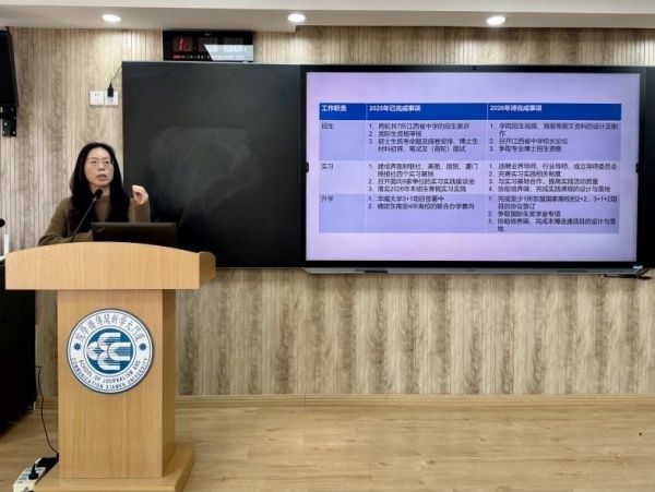 会上,院长全面总结了学院2025年在学科建设、人才培养、队伍建设、科学研究、对外交流、社会服务等方面取得的主要成绩与进展,并围绕学校发展战略,对学院下一阶段的发展方向与重点工作作出部署。