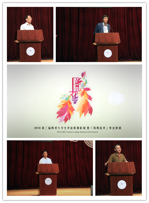 在开幕式现场,首先由厦门大学的邬大光副校长致辞。他引用“最后一课”的情节,告诫大家要珍惜每一节课、每一次活动,每一个“最后一次”并不意味着结束,而是新的开始。他指出,今年参加影展的高校代表团和参展影片的数量都有所增加。他表示“厦门大学是包容开放的,无论来自哪里,我们都是同路人。”最后他衷心希望今日到来的所有兄弟院校能够继续把微电影做好,和厦大师生一直做“同行人”。