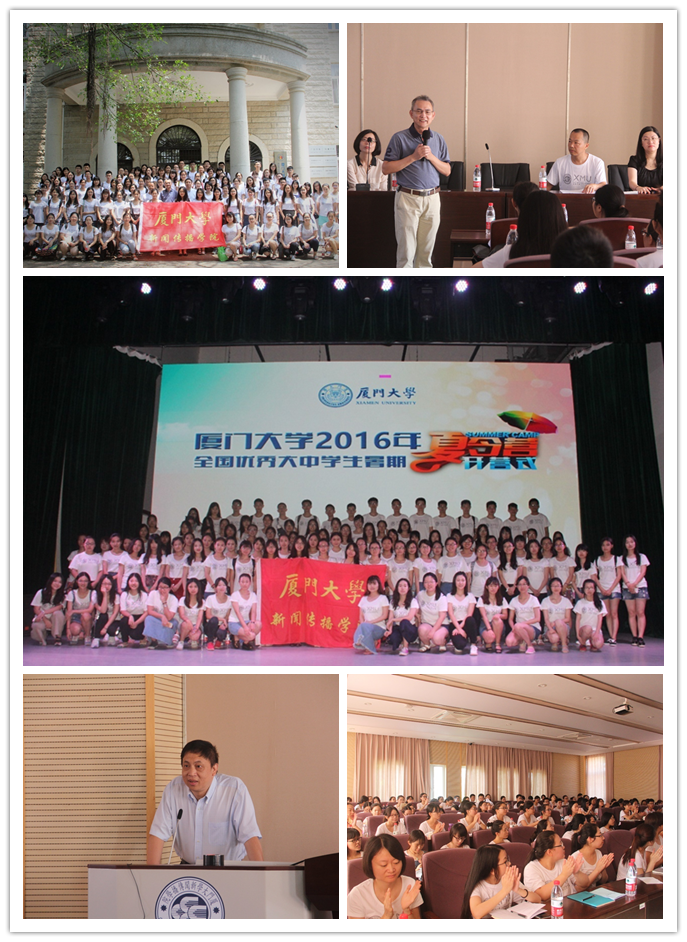 7月16日上午,厦门大学全国优秀大中学生夏令营开营仪式在建南大礼堂举行。在此过程中,营员们欣赏了厦门大学学生代表高质量的艺术表演,献上了阵阵掌声;聆听了厦门大学副校长詹心丽的致辞,大、中学生营员代表的发言;最后,厦门大学人文学院朱水涌教授做了题为:厦门大学人文历史文化漫谈的讲座。朱水涌教授将厦大精神概括为三大点:高远胆识、自强性格、至善境界。讲座最后朱水涌教授以:“鹭江海阔深千尺,不及厦大校友情”,表达了大家对校祖陈嘉庚先生的深深敬仰及对厦大校友的挚爱。16日下午,营员们参观了厦门大学校史馆、生物馆,对厦门大学的发展历程及教学环境有了进一步的了解,同时对校园环境的考察也使得学子们更直观地感受到了厦门大学的迅速发展与魅力风光。16日晚间,营员们欣赏了2016年《两岸大学生华语影像联展暨凤凰花季毕业影展》优秀作品。