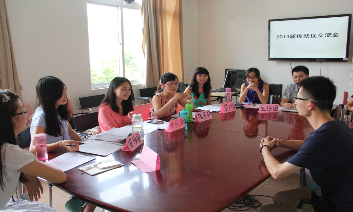 2014年就促纳新交流会吸引到了本科生及研究生共55位。同学们都积极认真地回答学长姐的提问,表达自己对部门工作的理解与加入就促大家庭的愿望,现场高潮迭起,气氛热烈。
