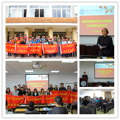 为了做好学院2014年寒假社会实践工作,动员和组织广大青年学生踊跃参加到社会实践活动中来,1月14日中午,新闻传播学院2014年寒假社会实践出征仪式在新闻楼报告厅隆重举行。学院党委副书记林盛铨,团委书记戴蓥,团委副书记胡泽红,辅导员黄文、钟书库等与各实践队成员及学生代表一同出席。