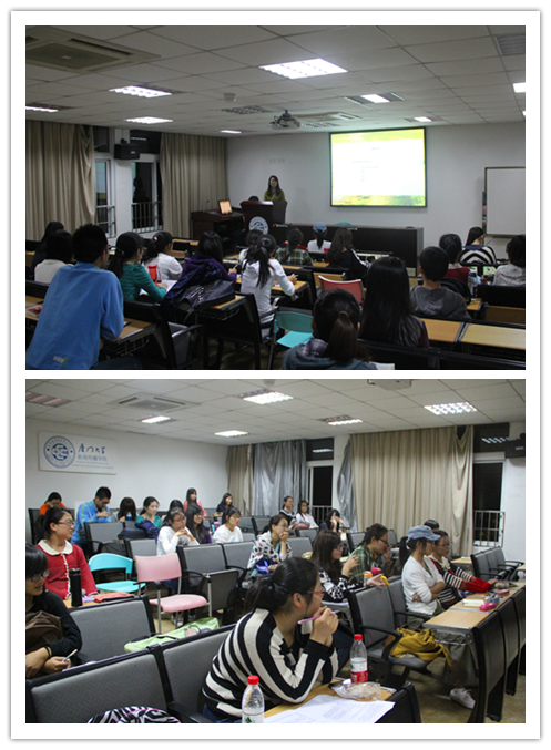 讲座中,白�凡以亲切幽默的语言和同学们分享了自己的留学见闻和趣事,准备出国过程中遇到的问题以及求职经历。她强调,留学有利有弊,同学们要结合自身的实际情况,量力而行,不要以功利的心态对待留学。