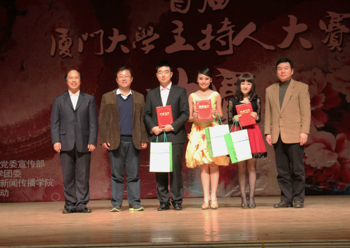 为响应党的十八大关于“丰富校园文化生活,鼓励青年成长”的指示精神,教育和引导广大青年学生关注时事热点,锻炼播音主持技能,积极践行社会主义核心价值体系,12月27日晚,由厦门大学党委宣传部、共青团厦门大学委员会共同主办,新闻传播学院承办的2012年厦门大学主持人大赛决赛在建南大礼堂隆重举行。校党委宣传部副部长楼红英,校团委副书记葛郝锐,新闻传播学院党委副书记林盛铨等应邀出席。