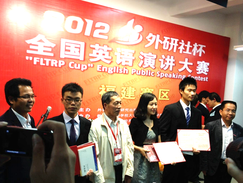 2012年11月16日至18日,由外语教学与研究出版社主办的2012年度“外研社杯”暨CCTV杯英语演讲大赛福建省总决赛在福州市举行。厦门大学新闻传播学院传播学系2011级本科生张可一荣获全省第二名。作为本届比赛福建赛区的特等奖获得者,她将于今年12月初代表福建省赴北京参加全国总决赛的角逐。
