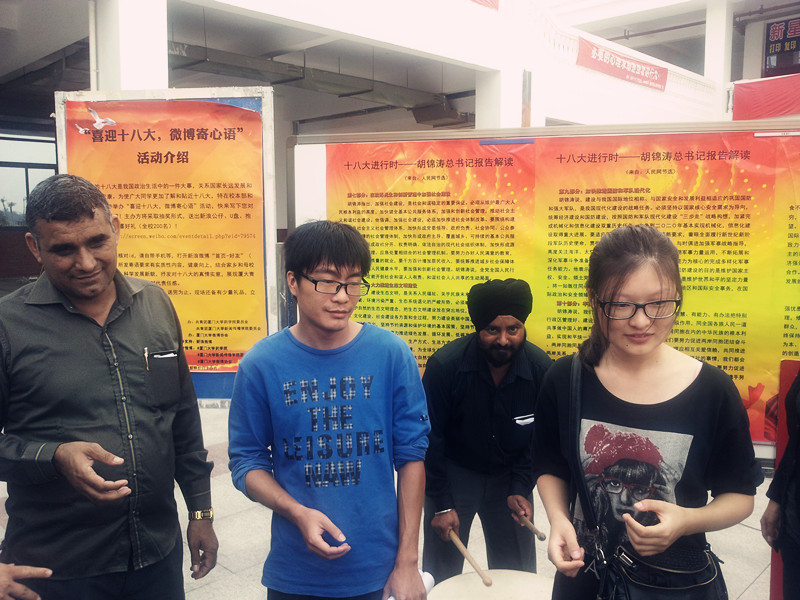 热闹非凡的活动现场吸引了大量同学“围观”,不少同学即时编辑发送微博。新闻传播学院本科生朱玉芳认为:“这样的活动挺新颖的,容易吸引学生参与”。几名海外留学生也闻声而至,一位印度籍留学生自告奋勇当起了鼓手。来自尼泊尔的医学院留学生Keshav(肯沙)操着不甚标准的普通话说:“这个(活动)很新鲜,能了解时事,很好。”药学院维吾尔族本科生、入党积极分子马倩玉喜获好礼,她开心地说:“有趣、好玩,又能加深对十八大的认识,一举两得。”活动得到了同学们的热情支持和热烈欢迎,700多份小礼物发放一空。