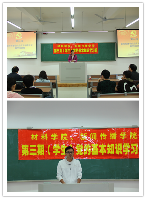 新闻传播学院2011级硕士生秦宏同学与材料学院2012级本科生储娴俊同学与全体学员交流了党校学习的心得体会。秦宏表示,通过党校的教育,加深了对党的认识,端正了入党的动机,坚定了入党的决心。秦宏还特别分享了学习十八大报告的心得体会,他把十八大报告里对社会主义文化的论述与自己所学专业结合起来,认为,作为新闻传播的学子,要按照十八大报告的精神和时代的需要,立志成为掌握先进传播理念和技术的专业人才,努力在社会上传播社会主义先进文化,将社会主义的先进文化传播事业作为自己的毕生事业,贡献自己的力量。