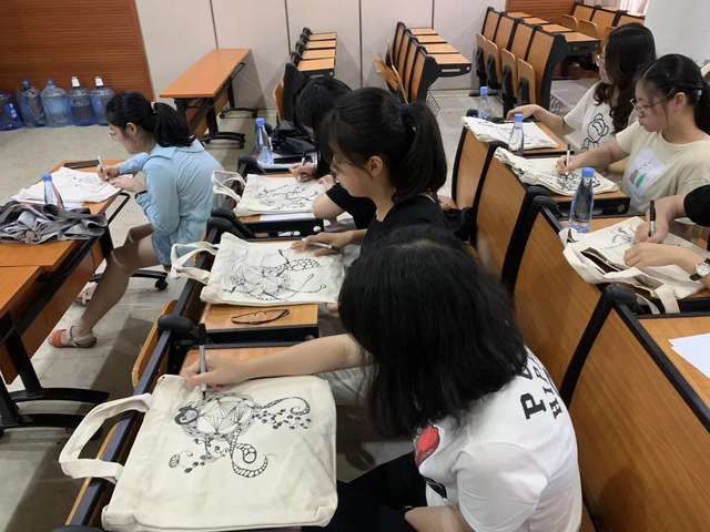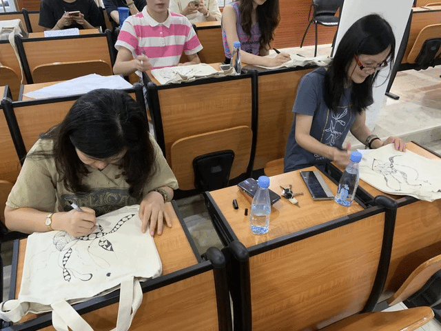 与之前不同,这一次李颖老师带领大家把禅绕画绘制在帆布包上,趣味性的活动不仅使得大家增强了体验感,更帮助老师和同学们缓解了期末考试周的压力。