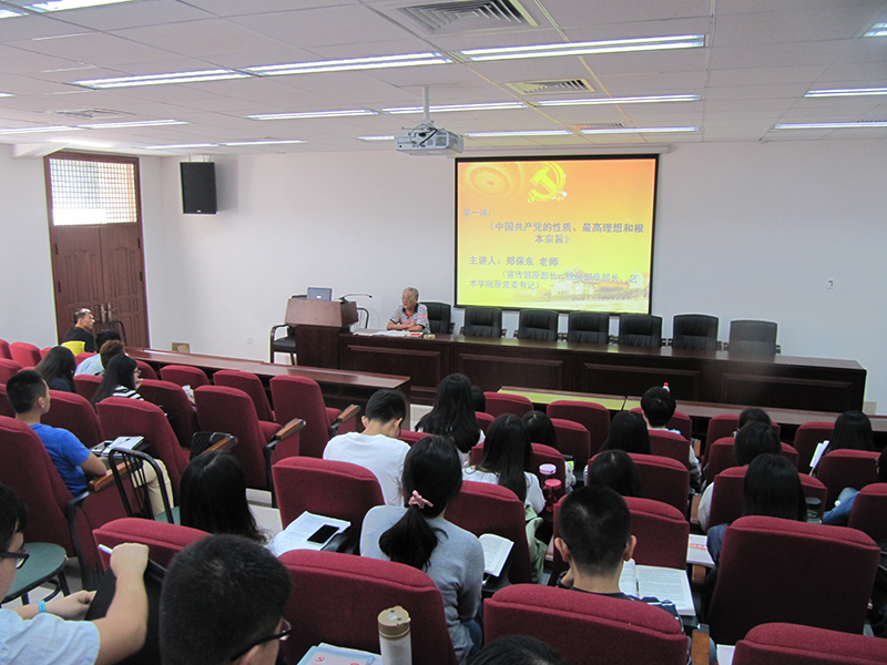 通过本次党校动员大会,使同学们真切的了解到党校学习作为自身入党旅程中的重要意义,并引导学员们从深层次探索和了解党的基本知识,同时体会到将来成为一名中国共产党员的光荣与使命。经过简短的休息后,学员们投入到由校党委宣传部原部长、统战部原部长、艺术学院原党委书记郑保东老师带来的题为《中国共产党的性质、最高理想和根本宗旨》的第一堂课中来。(外文学院党委 供稿)