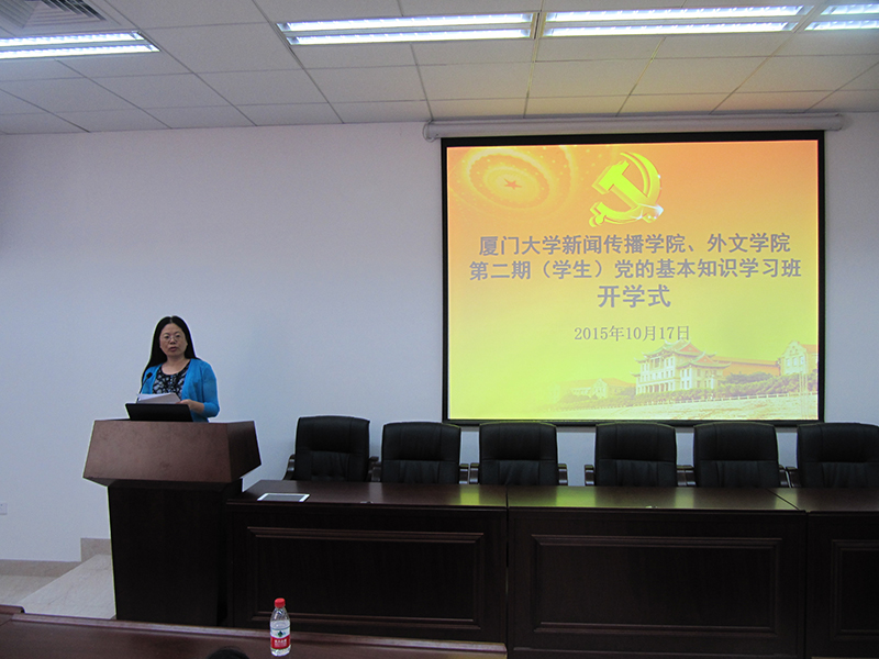 10月17日上午,新闻传播学院、外文学院第二期(学生)党的基本知识学习班在南光三新外文楼112报告厅正式开班。开学式由外文学院郑新风副书记主持,陈志伟书记做动员报告。出席开幕式的还有新闻传播学院团委书记兼带队教师戴蓥、外文学院党务秘书兼带队教师张彬、新闻传播学院党务秘书胡长占,以及两院63位党校学员。