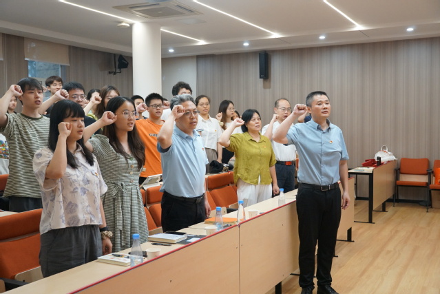 在曾铮的带领下,现场师生党员共同重温入党誓词,砥砺初心使命。组织上的入党一生一次,思想上的入党一生一世。在铿锵的誓言下,在场的师生党员再次聆听内心的声音,坚定使命担当。