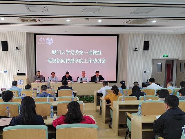 3月27日,校党委第一巡视组巡视新闻传播学院工作动员会在南光二4楼报告厅召开。校党委副书记、纪委书记、国家监委驻厦门大学监察专员全海,第一巡视组组长叶鹏飞、副组长黄鸿德,巡视办主任洪真裁,第一巡视组其他成员出席动员会。新闻传播学院院长林升栋、学院党政班子成员、在职教职工、退休老同志代表和学生代表参加会议。会议由学院党委书记曾铮主持。