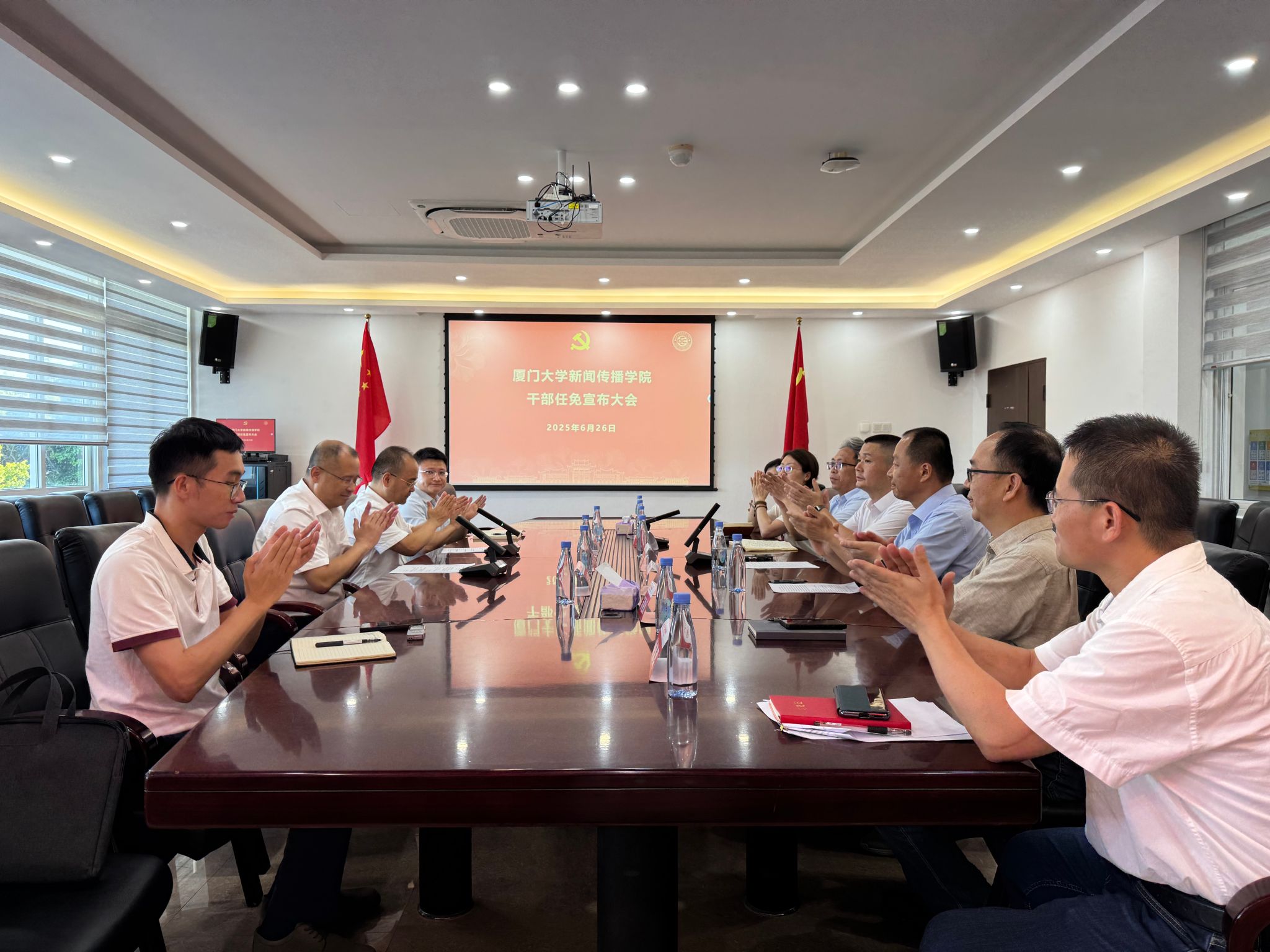 2025年6月26日,厦门大学新闻传播学院召开教师干部会议,校党委常务副书记林东伟,校党委常委、组织部部长黎永强出席会议。新闻传播学院领导班子成员、教工党支部书记、系负责人、科级干部和教职工代表参加会议。会议由黎永强主持。