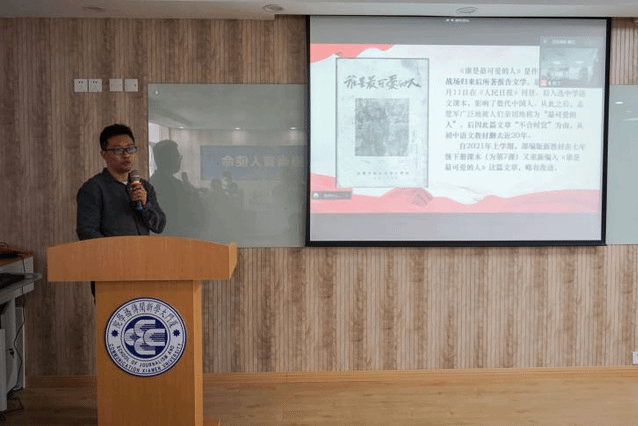 学院党务秘书、新闻学系本科生党支部书记黄文以《抗美援朝,我们是怎么“赢”的》为题开场,从军事的角度分享关于抗美援朝出国作战的战略考量、基层战术和思想政治工作,重点讲解了“三三制”“穿插战术”“反斜面”等志愿军基层指战员常用的战术战法,结合图片和短视频与老师同学们一起领略了志愿军高超的战场指挥艺术和精妙的战术设计,澄清了“人海战术”等传统错误概念,同时介绍了抗美援朝出国作战胜利在重塑中华民族精神气质、传播新中国国际形象等方面留下的深远影响。