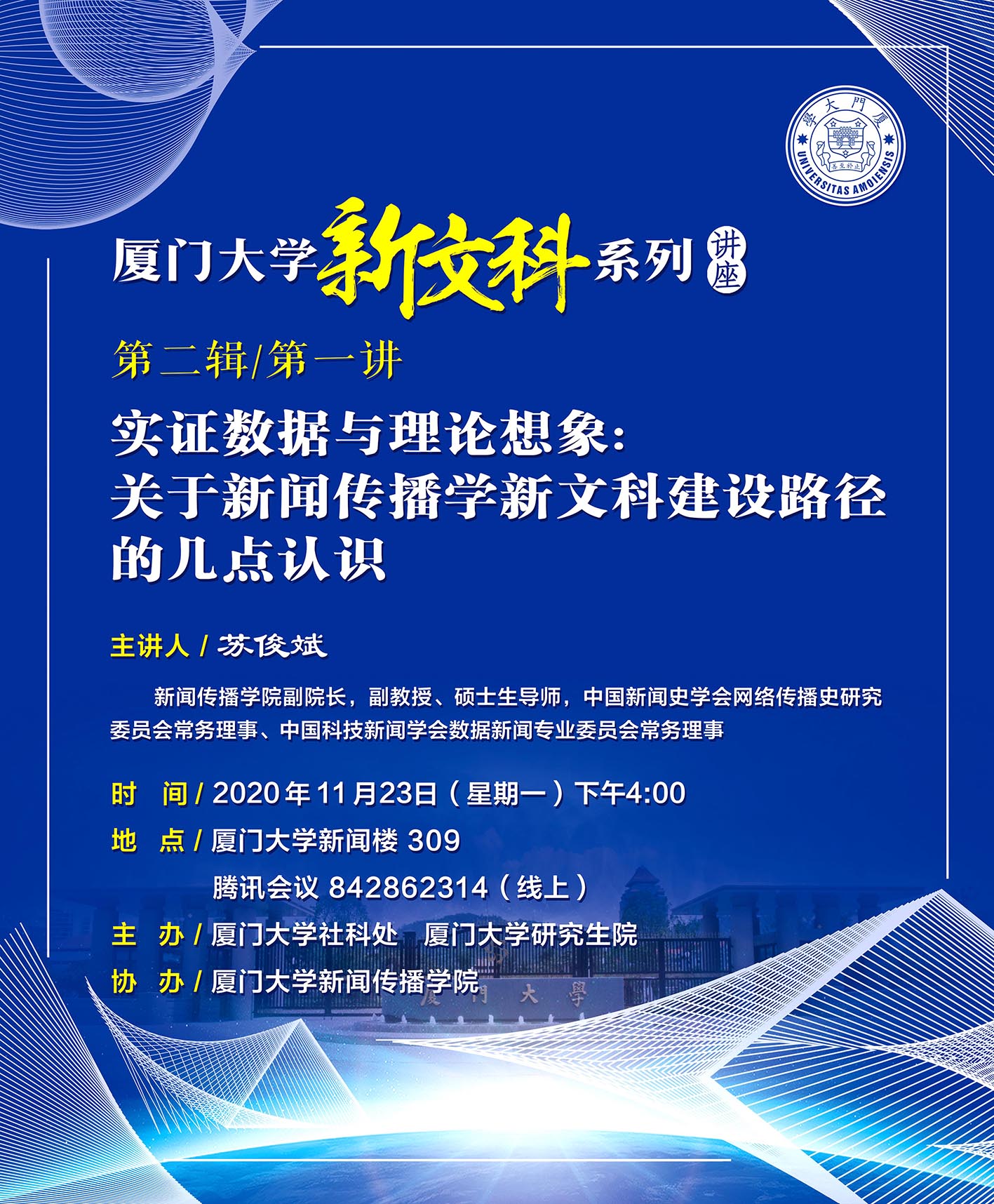 为了落实《厦门大学人文社会科学提升计划》,让广大师生了解新文科,社科处联合研究生院推出新文科系列讲座第二辑,从多学科视角对何为新文科、怎样建设新文科进行阐释,展示厦门大学专家学者对于新文科的理解、认识和把握,推动我校新文科建设!