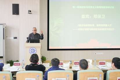 中国人民大学马克思主义理论研究和建设工程新闻学科首席专家郑保卫教授发表了题为《推进马新观教育,培养高质量人才——对做好福建马新观教育的期待与建议》的主题演讲。郑教授回顾了自己中小学在福建读书的特殊经历,肯定了福建省高校合力组建马克思主义新闻观教育联盟的举措,特别是肯定了厦门大学在牵头联合全省高校及闽西中央苏区纪念馆作为成员单位共同组建联盟所做的工作。他提出,联盟应致力于提高站位,将马新观教育与党和国家发展战略及新时代新闻人才培养相结合;注重提升学生的学习自觉性;注意整合福建丰富的地域文化及红色资源;坚持围绕用马新观铸魂培根育人开展主题教育活动,以提升联盟的向心力和影响力。