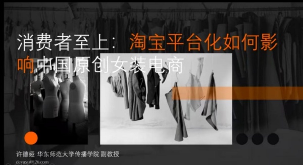 最后,许德娅老师总结道,淘宝的平台化进程虽然推动了中国电子商务的快速发展,但也对原创设计女装店铺的生存环境造成了深远影响。平台的政策和网红模式迫使店铺在原创设计与商业成功之间艰难平衡,许多设计师在应对平台要求的同时,逐渐失去了对原创设计的热情。