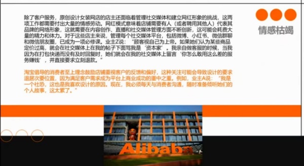 在淘宝平台化的大背景下,许德娅老师通过定性研究,深入了解了淘宝上原创设计女装店铺的从业人员所面临的日常实践和挑战。她发现,随着淘宝网红模式的兴起,店铺被迫投入大量时间和资源进行社交媒体推广、直播和粉丝维护,导致设计工作的时间被大幅压缩。许多店铺不得不妥协于平台的快节奏要求,放弃原创设计,转而销售工厂现成的服装。此外,淘宝的“消费者至上”理念使得店铺在客户服务和情感劳动上投入大量精力,进一步加剧了设计师的工作压力。