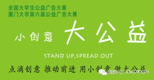 由教育部指导,中国大学生在线主办的全国大学生公益广告大赛,今年继续在厦大校园内和厦大传统的公益广告大赛有机结合,采取”校赛后上报国赛“的流程开展征集和评奖活动。