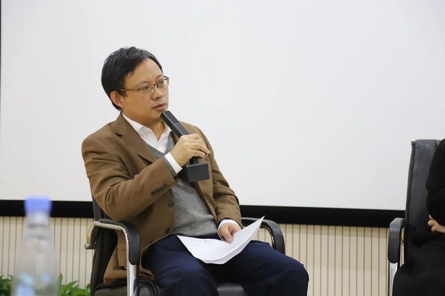 表彰大会后,主题为“什么是未来的‘新新闻人’——来自媒体业界的观察”的“媒体精英对话”活动随即开始。本场对话由新闻传播学院副教授叶虎主持,央视网福建频道总编辑钟岷源和澎湃新闻副总编辑黄芳参与讨论。