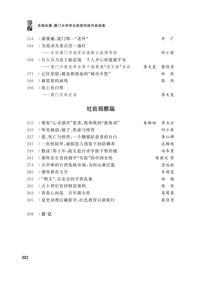近日,厦门大学新闻传播学院新闻学系主编的学生新闻实践作品选集《见微知著》由厦大出版社出版。