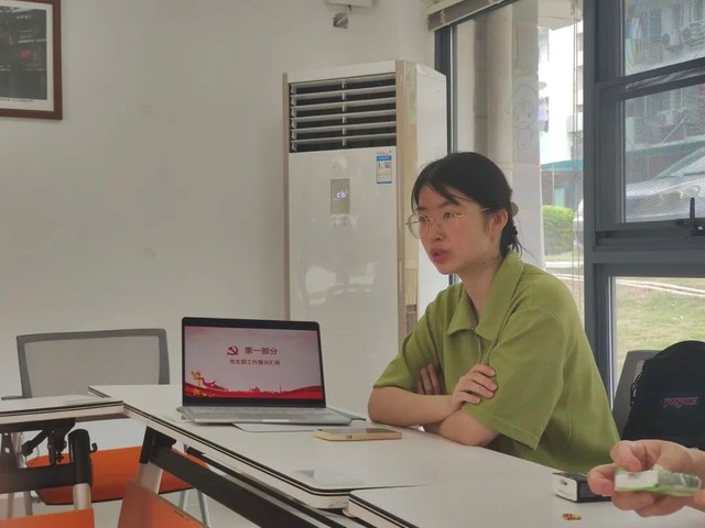 会议伊始,党支部书记顾炜思嘉代表支部委员会向学院党委委员和各位党员报告半年来党支部工作情况。2023年上半年,党支部主要开展了政治理论学习、深入社会实践和落实党员发展与转正、党支部立项等方面的工作。同时,顾炜思嘉也检视和剖析了目前党支部存在的一些情况和问题,并提出了下一步整改承诺:积极推进党务公开、加强与支部党员的沟通联结,坚持“党建+”工作理念,切实在多元化活动中强化党员的综合素质。