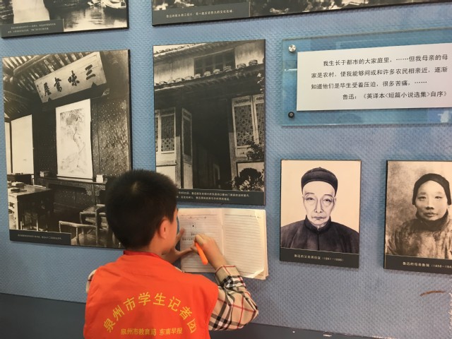 最后,志愿者带领小记者们参观了鲁迅纪念馆、校史馆。鲁迅纪念馆共有5个展室,小记者们跟随讲解员回顾了鲁迅先生的人生轨迹及思想历程,也浏览了很多鲁迅在厦门大学时的历史文物资料。鲁迅先生曾在厦门大学任教,给厦大留下了宝贵的精神财富。鲁迅堪称现代中国的民族魂,他的精神深刻影响着他的读者、研究者,以至一代又一代的中国现代作家、现代知识分子,而今鲁迅的精神也被我院的大学生们进一步传递到小学生心里。校史馆的参观则让小记者们了解了厦门大学建校和发展的光辉历史,校主陈嘉庚先生的事迹让小记者们都颇有感触,他们也纷纷在本上记下自己听到的知识和自己的心得体会,颇有专业记者的风范。