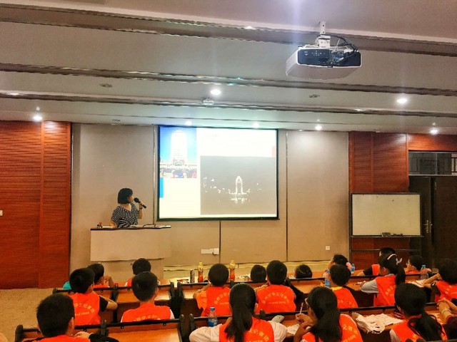 志愿者们和随行的老师首先带领学生记者们前往南光206教室,在稍作休息之后,志愿者为他们开展了以“手机摄影”为主题的讲座。讲座以“构图”为主题展开,通过大量的图片以及志愿者耐心有趣的讲解,帮助小记者们了解有关摄影技巧方面的基础知识。在讲解过程中,小记者们积极与老师展开互动,举手回答问题、向老师提出自己的疑惑,并在本子上记下自己的心得体会,充分展示了小记者们对于摄影的好奇心和求知欲。