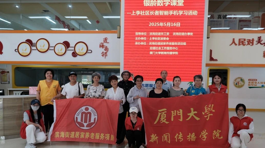 “银龄数字课堂”是新闻传播学院组织学生走进学校周边社区、服务当地居民、奉献社会的公益活动,让学院“爱你爱我,温暖新传”主题系列活动辐射到周边居民,让同学们在奉献中感受自我社会价值与集体互助互帮的温暖,同时也是促进学生在新时代数字技术应用与普及的传播模式等方面进行学习和应用专业知识的一种有益实践探索。多年来,厦门大学新闻传播学院“走进老人,读懂中国”之“银龄数字课堂”社区志愿服务系列活动的顺利举办,获得了共青团厦门市思明区委员会的指导以及演武、上李等学校周边社区的热心支持。