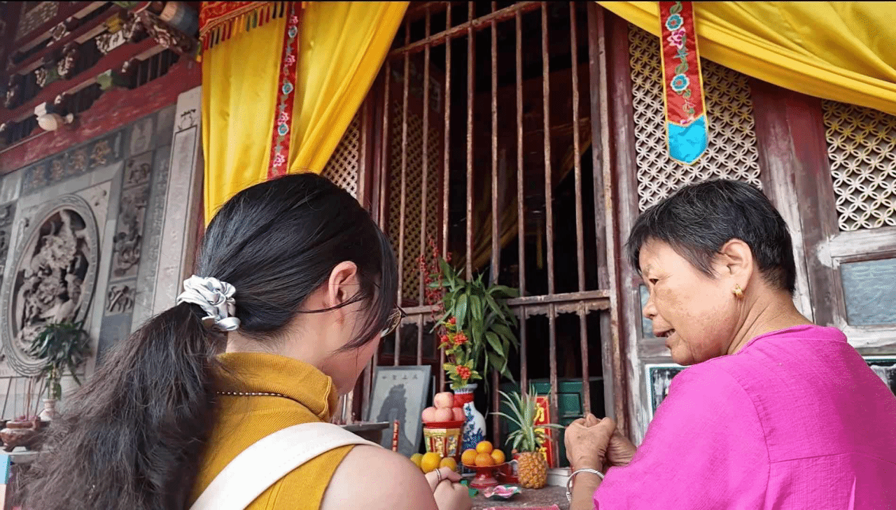 殿内两尊宋代樟木雕妈祖像,让人触摸到历史的温度;“梳妆楼”里的一面镜子、一张梳妆桌,则还原了妈祖温婉人性的一面。实践队通过记录仪式空间、访谈长者信众,体会“神格”与“人性”在日常中的交融,深入思考文化如何在生活中延续与转化。