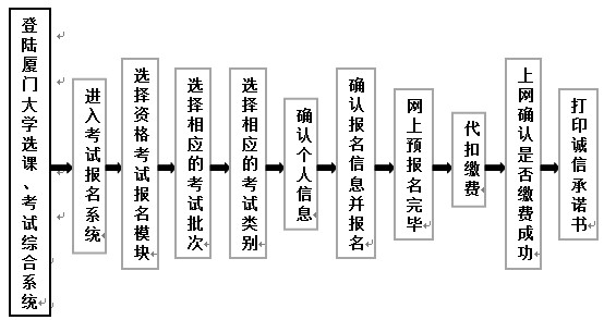 1. 请用IE浏览器(IE8或IE9)登陆厦门大学选课、考试报名综合系统(http://bkxk.xmu.edu.cn/ ),进入考试报名系统,选择资格考试报名模块中的相应考试批次进行报名。