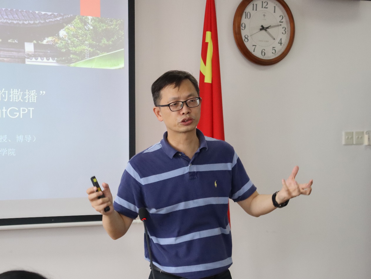 6月3日下午4点,复旦大学新闻学院传播系教授、博导邓建国作客厦大新传嘉庚大讲坛(第32讲)。本次讲座在新闻楼411教室举行,题目为《“延伸的心灵”和“对话的撒播”:论作为书写的chatGPT》。